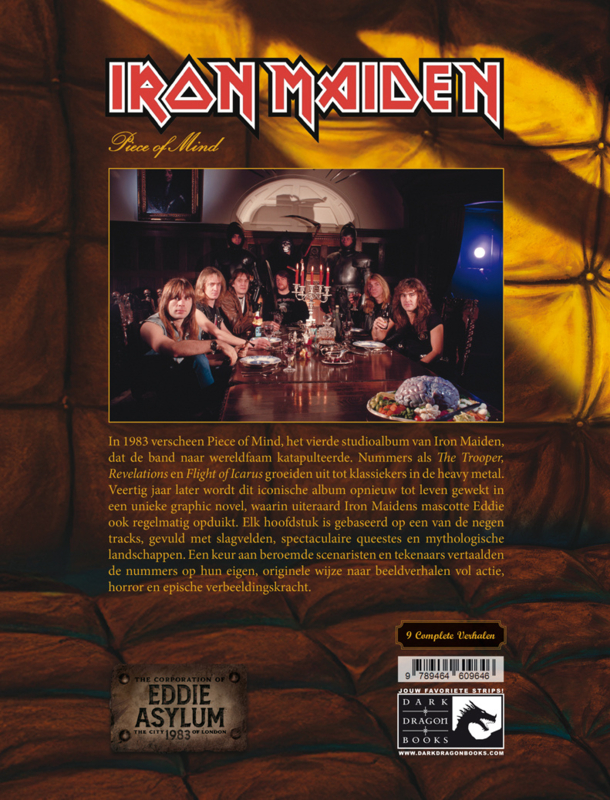 Artikelnummer: 14869In 1983 verscheen Piece of Mind, het vierde studioalbum van Iron Maiden, dat de band naar wereldfaam katapulteerde. Nummers als The Trooper, Revelations en Flight of Icarus groeiden uit tot klassiekers in de heavy metal. Veertig jaar later wordt dit iconische album opnieuw tot leven gewekt in een unieke graphic novel, waarin uiteraard Iron Maidens mascotte Eddie ook regelmatig opduikt. Elk hoofdstuk is gebaseerd op een van de negen tracks, gevuld met slagvelden, spectaculaire queestes en mythologische landschappen. Een keur aan beroemde scenaristen en tekenaars vertaalden de nummers op hun eigen, originele wijze naar beeldverhalen vol actie, horror en epische verbeeldingskracht.