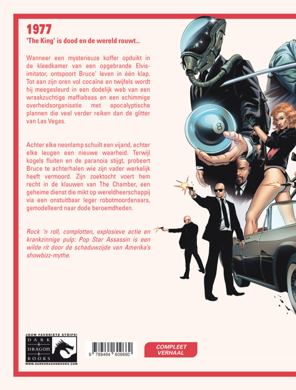 Wanneer een mysterieuze koffer opduikt in de kleedkamer van een opgebrande Elvis- imitator, ontspoort Bruce’ leven in één klap. Tot aan zijn oren vol cocaïne en twijfels wordt hij meegesleurd in een dodelijk web van een wraakzuchtige maffiabaas en een schimmige overheidsorganisatie met apocalyptische plannen die veel verder reiken dan de glitter van Las Vegas. Achter elke neonlamp schuilt een vijand, achter elke leugen een nieuwe waarheid. Terwijl kogels fluiten en de paranoia stijgt, probeert Bruce te achterhalen wie zijn vader werkelijk heeft vermoord. Zijn zoektocht voert hem recht in de klauwen van The Chamber, een geheime dienst die mikt op wereldheerschappij via een onstuitbaar leger robotmoordenaars, gemodelleerd naar dode beroemdheden.