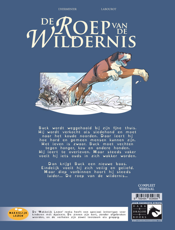 Artikelnummer: 14874Buck wordt weggehaald bij zijn fijne thuis. Hij wordt verkocht als sledehond en moet naar het koude noorden. Daar leert hij hoe hard en gemeen mensen kunnen zijn. Het leven is zwaar. Buck moet vechten tegen honger, kou en andere honden. Hij leert te overleven. Maar steeds vaker voelt hij iets ouds in zich wakker worden. Dan krijgt Buck een nieuwe baas. Eindelijk voelt hij zich veilig en geliefd. Maar diep vanbinnen hoort hij steeds luider... De roep van de wildernis...