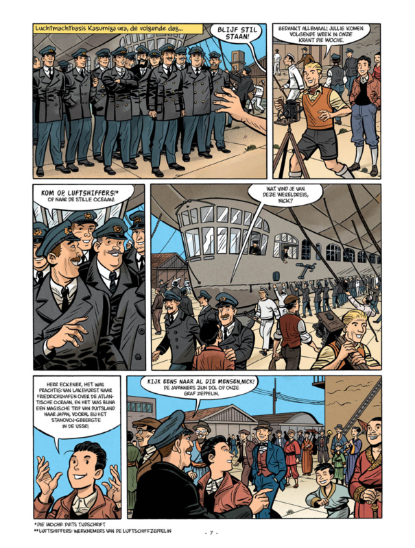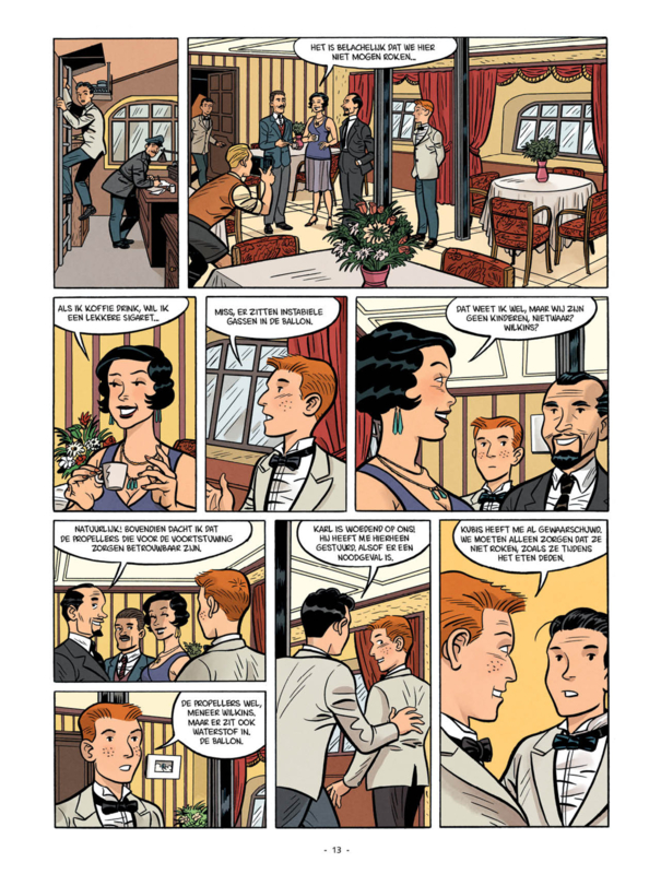 Dat denkt Nick Cardinali, de zestienjarige leerling-steward aan boord van de Duitse zeppelin. Wie van de internationale passagiers wil koste wat kost de wereldreis dwarsbomen? En hoe kan een jongen als Nick die plannen stoppen? Een spannend avontuur wacht hem in een van de indrukwekkendste vliegmachines van de twintigste eeuw! Vrij gebaseerd op de roman Zeppelin in gevaar van Boris Darnaudet.