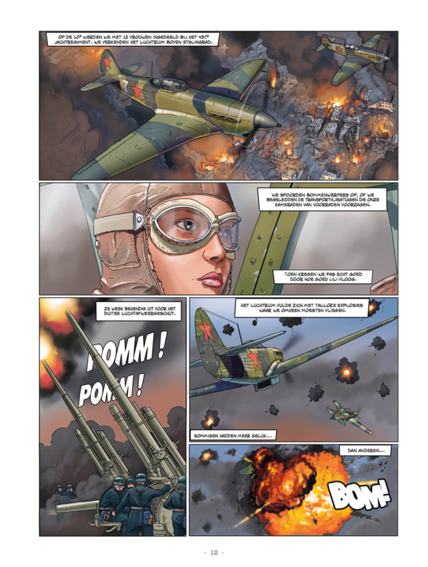 Artikelnummer: 14887Lidiya Litvyak, bijgenaamd Lili, werd in 1921 geboren in Moskou. Als tiener sloot ze zich aan bij een vliegclub en begon al op haar vijftiende te vliegen. Eind jaren dertig haalde ze haar instructeurslicentie en na de Duitse inval trad ze toe tot de Sovjetluchtmacht. In 1942, tijdens hevige luchtgevechten, kreeg ze de bijnaam “de Witte Roos van Stalingrad”, naar het verkeerd herkende embleem op haar toestel. Ze diende bij meerdere jachtregimenten en ontving de Orde van de Rode Ster. In 1943 werd ze neergeschoten en omdat haar lichaam niet werd gevonden, werd ze als krijgsgevangene beschouwd. Dat stond destijds gelijk aan verraad. Pas op 5 mei 1990 kreeg ze alsnog de titel Held van de Sovjet-Unie.