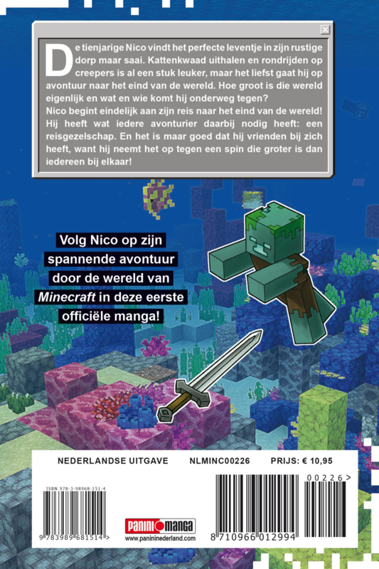 Artikelnummer: 14976Een officieel Minecraft-manga-avontuur! Het vredige leven in een perfect gebouwd stadje verveelt de tienjarige Nico zo erg dat hij kattenkwaad uithaalt. Op creepers rijden terwijl ze exploderen is leuk, maar wat hij echt wil, is ontsnappen aan de blokkerige omgeving van zijn huis en zijn knutselvaardigheden gebruiken voor een avontuur naar het einde van de wereld. Hoe groot is die wereld eigenlijk, en wat zou hem in de weg kunnen staan? Nico is vertrokken op een avontuur naar het einde van de wereld! Hij heeft nu alles wat een echte avonturier nodig heeft: een avonturiersgezelschap. Gelukkig heeft hij vrienden bij zich, want hij staat op het punt een spin te trotseren die groter is dan zijn hele gezelschap bij elkaar!