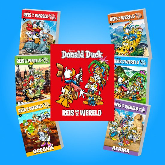 In de Reis om de Wereld pockets beleven Donald en zijn vrienden hun avonturen steeds in een ander werelddeel. In elke pocket steken ze de Duckstadse grens over en gaan op ontdekkingsreis! Pak je koffer en reis mee!